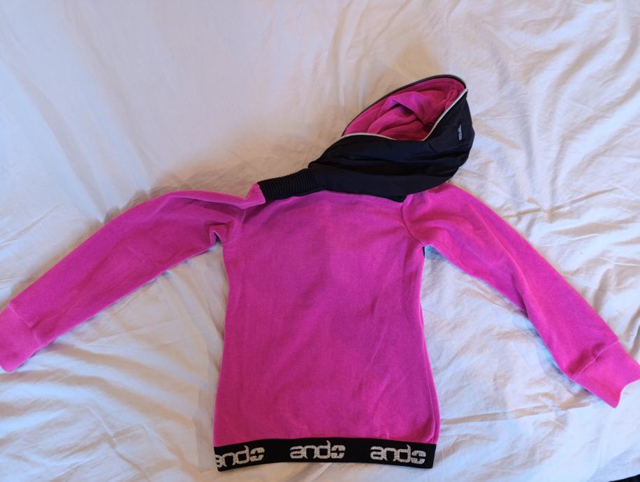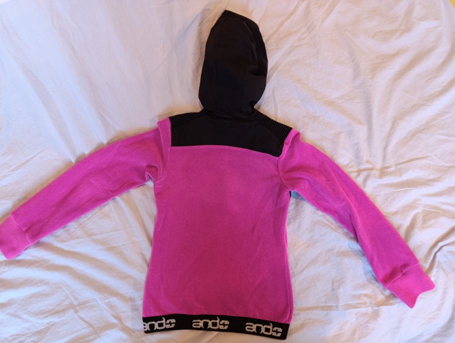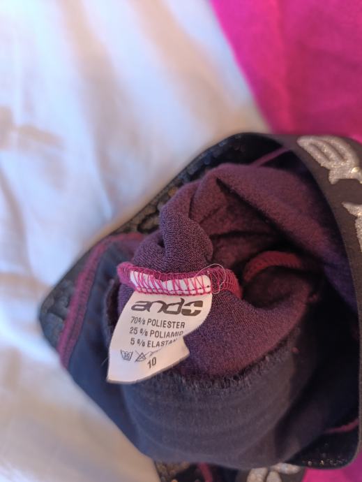 Dekliški termovelur AND by Andraž, fuksija/roza in črne barve. Zelo lepo ohranjen in skrbno čuvan ter vzdrževan. Brez madežev ali poškodb ipd. Za 10-letnico.