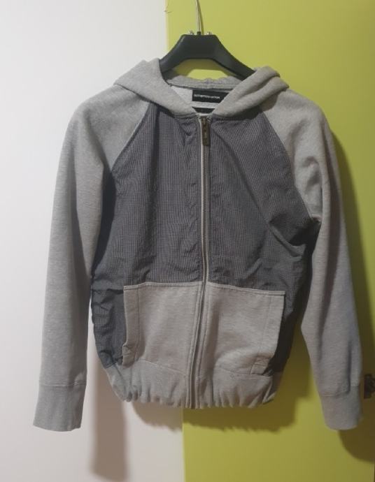 Kot nova fantovska jopica - jakna s kapuco in žepi, sive barve, tanjša, vendar okosmatena, vel. S oz. št. 146-152.