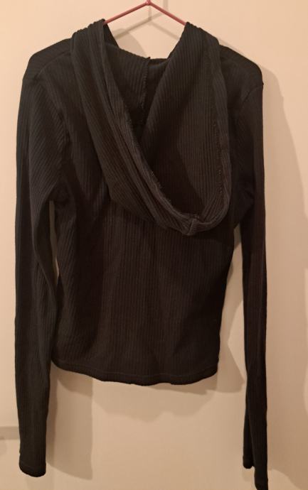 2x oprana črna jopica za punco. Sestava: 94% bombaž, 6% elastan. Je ožja in elastična, s kapuco in zadrgo.