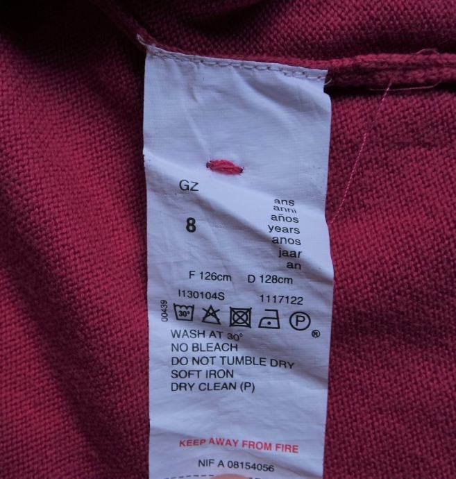 Zelo lepo ohranjena bombažna jopica s kratkimi rokavi, ciklamne barve, s srebrno nitjo na robovih, velik gumb za zapenjanje.