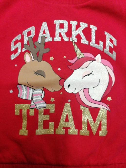 Pulover z božično - novoletnim motivom v rdeči barvi, znamke H&M, št. 146/152. Iz 70% bombaža in 30 % poliestra. Dolžina jopice je 42 cm, od pazduhe do spodnjega roba pa 21 cm. Dolžina rokava od rame do zapestja je 46 cm, od pazduhe do zapestja pa 41 cm. Zelo lepo ohranjeni, kot nova. Možna dostava na Izlake ali v Zagorje, lahko pa pošljem tudi po pošti. Oglejte si še ostale moje oglase po ugodnih cenah.