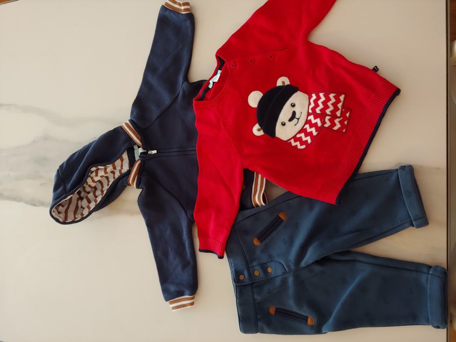 Prodam v kompletu hlače, pulover in jopica vse Okaibi in številka 74 (12 mesecev). Samo osebni prevzem.