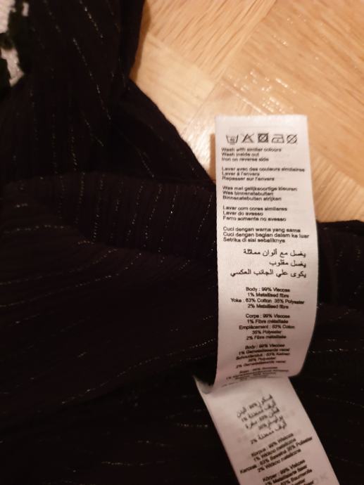 Jopica je brez gumbov, z možnostjo zavezovanja pri vratu, izdelana iz fine in kakovostne viskoze, dodatek vzorca v beli barvi pa jo naredi elegantno in nevsakdanjo. Izdelana v Indiji, velikost S.