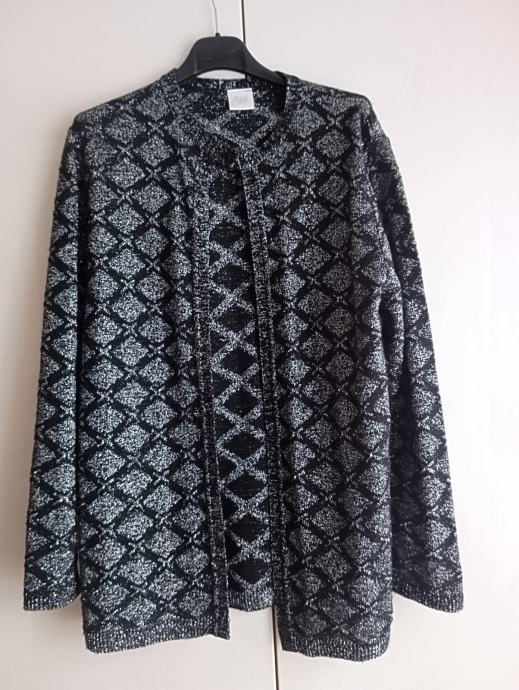 Nošena samo 1x, pletena, ima vpletena srebrne nitke, zapenja se zgoraj z 1 gumbom, je raztegljiva, od ene pazduhe do druge meri 49cm, dolžina je 67cm, ne menjam, ptt ni vključena v ceno