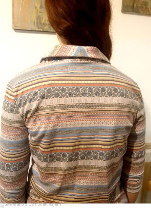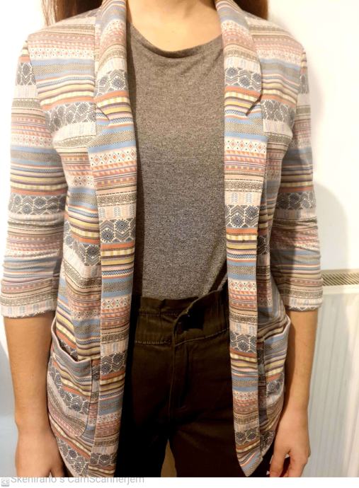 Jopica s pastelnimi pisanimi vzorci. Dva žepa, ovratnik, brez gumbov.