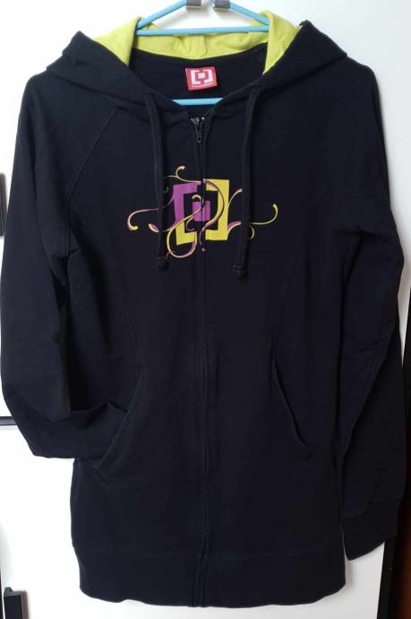 Velikost je L, vendar je precej telirana (oseba s konfekcijo M/38 jo lahko nosi kot oversized, seže preko zadnjice).