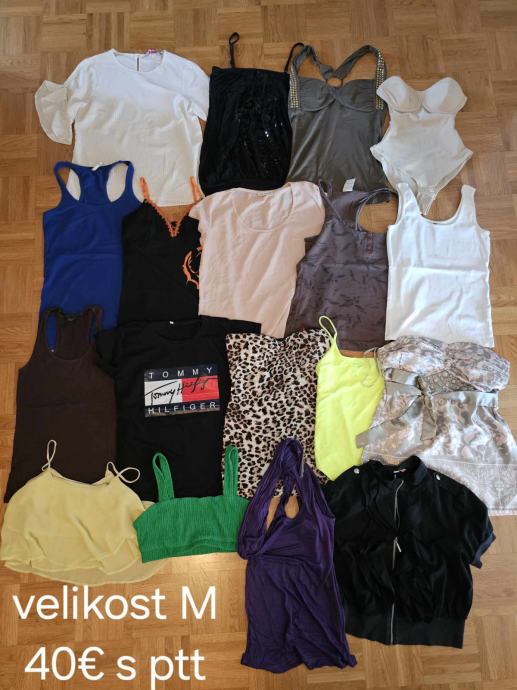 majice, puloverji, kratke hlače, krila, obleke in pajaci velikost M