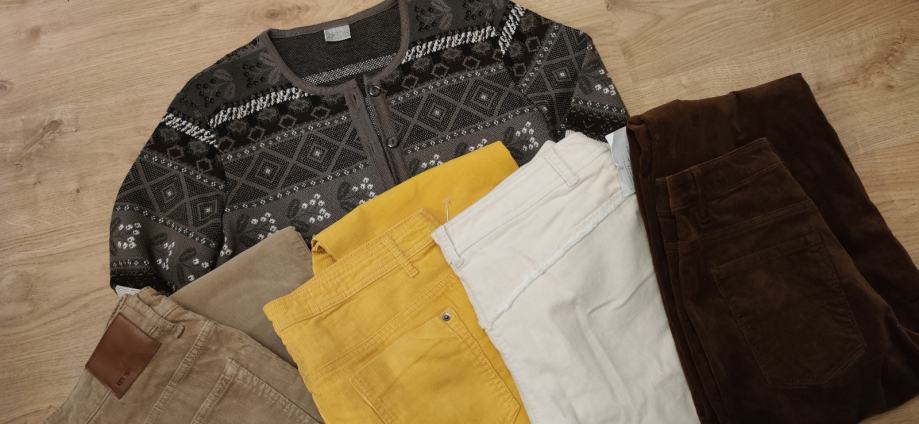 Prodam žametne hlače (nove-razen desno rjavih) primerne za vel. 38/40 in jopico Pletenine Ros vel. M iz 100% volna. Jopica je nenošena.