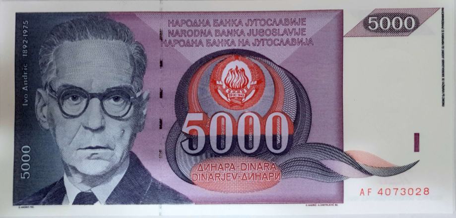 Prodam bankovec 5000 din letnik 1991 v UNC kvaliteti, Prevzem bankovca je možen v Mariboru, na stroške kupca pošljem tudi po pošti (tarifa Pošte Slovenije in pakiranje). Več info na mail, na sms ne odgovarjam.