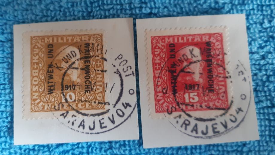 Prodajam dvojnike in ostale viške iz svoje zbirke. Bosna in Hercegovina 1917, celotna žigosana serija - teden vdov.