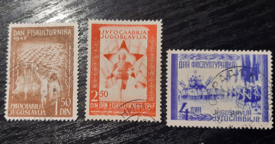 Jugoslavija 1947, celotna žigosana serija šport, atletika, gimnastika