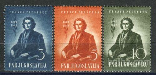 Jugoslavija, celotna nežigosana izdaja na temo Prešeren; kataloška številka Michel: 567/69; kataloška vrednost: 3,5 €.