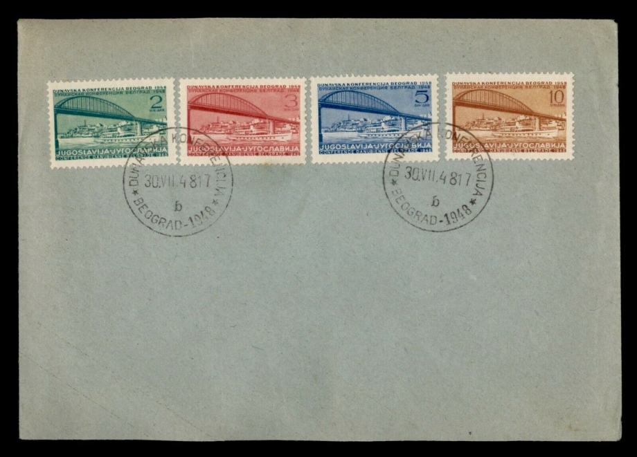 Prodajam dvojnike in ostale viške iz svoje zbirke. Jugoslavija, ključni OPD/FDC – Donavska konferenca, železnice. Kataloška vrednost: 150 €. Kataloška številka (Michel): 548/51.