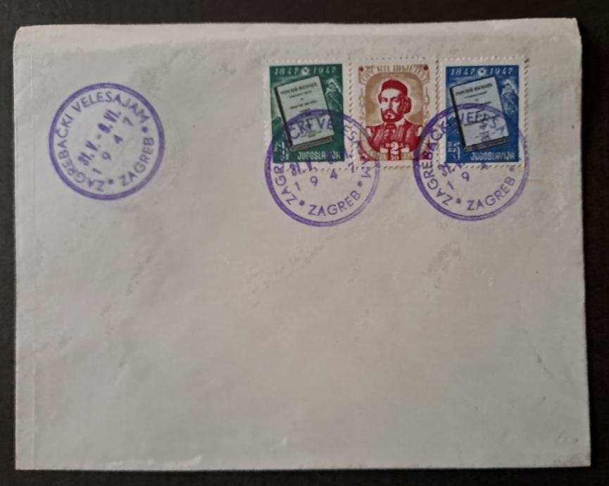 Prodajam dvojnike in ostale viške iz svoje zbirke. Jugoslavija, priložnostna kuverta - zagrebški velesejem 1947.
