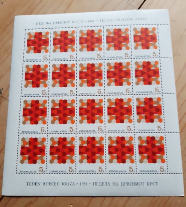 Prodajam dvojnike in ostale viške iz svoje zbirke. Jugoslavija, rdeči križ 1968 celotna pola.