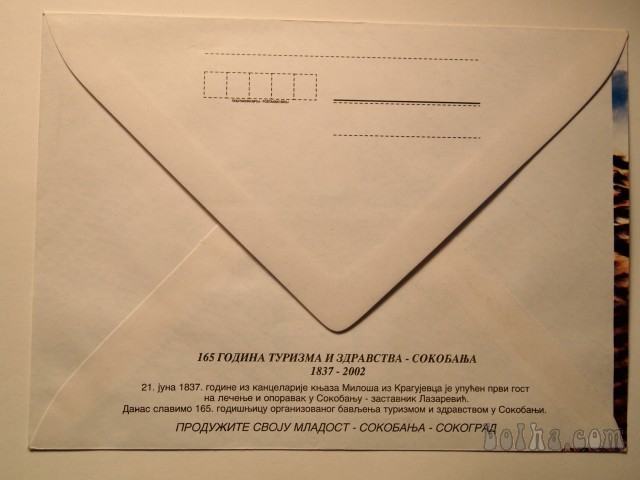 Priložnosta kuverta, 165 OBLETNICA TURIZMA IN ZDRAVSTVA - SOKOBANJA, 1837 - 2002.