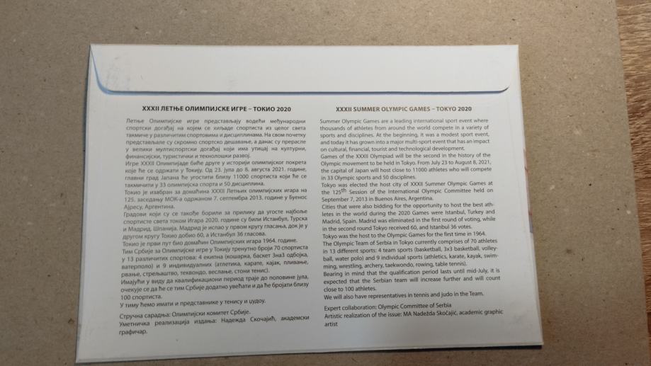 Srbija 2021 OI Tokyo FDC
