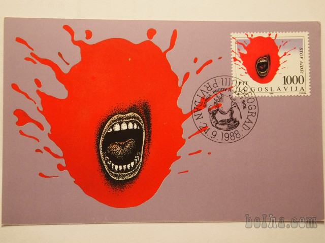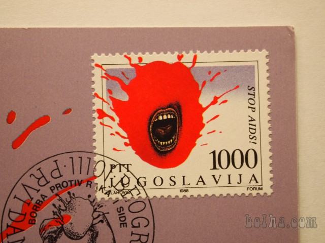 Znamka na priložnostni razglednici, BOJ PROTI AIDSU, 1988.