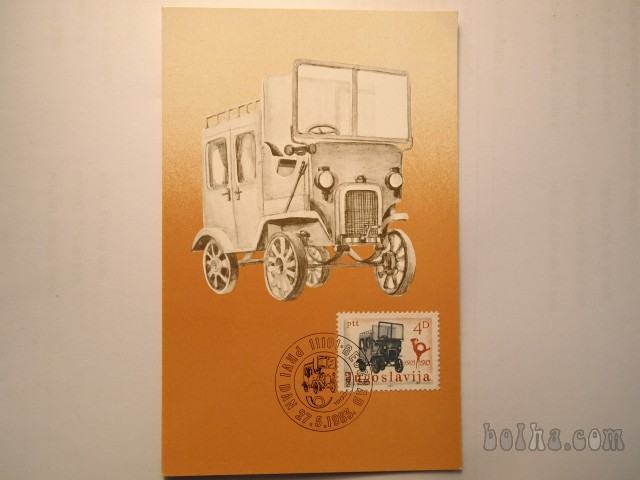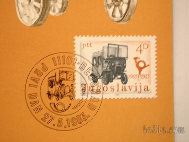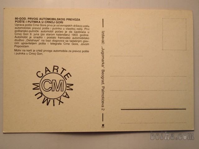 Priložnosta znamka na razglednici ob 80 obletnici prvega avtomobilskega poštnega prevoza v Črni gori (1903 - 1983 ).