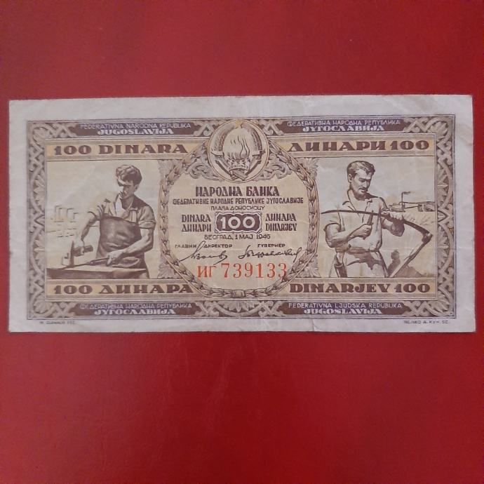 Ohranjen bankovec 100 dinarjev , letnik 1946.