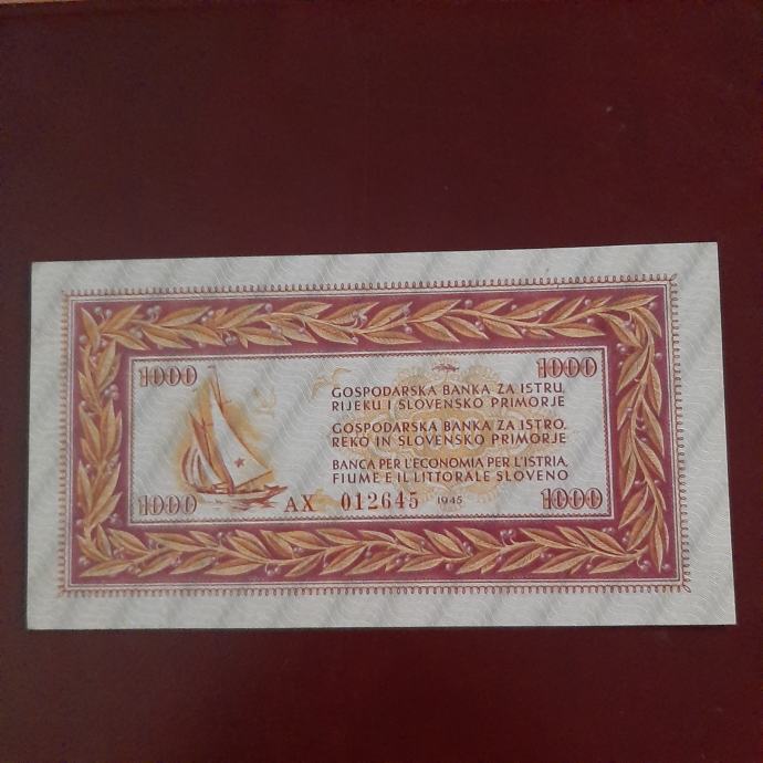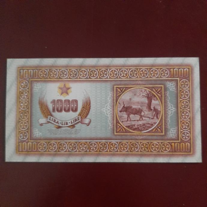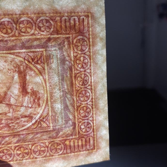 Zelo redek in iskan bankovec 1000 lir, letnik