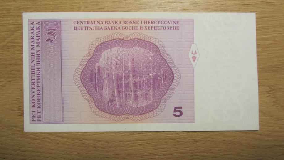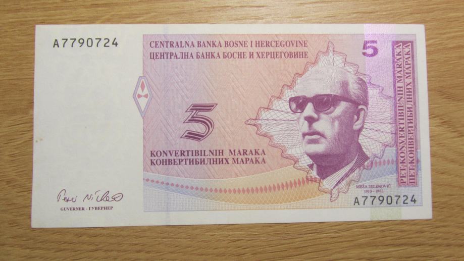 Prodam odlično ohranjen bankovec za 5 konvertibilnih mark 1998 BIH