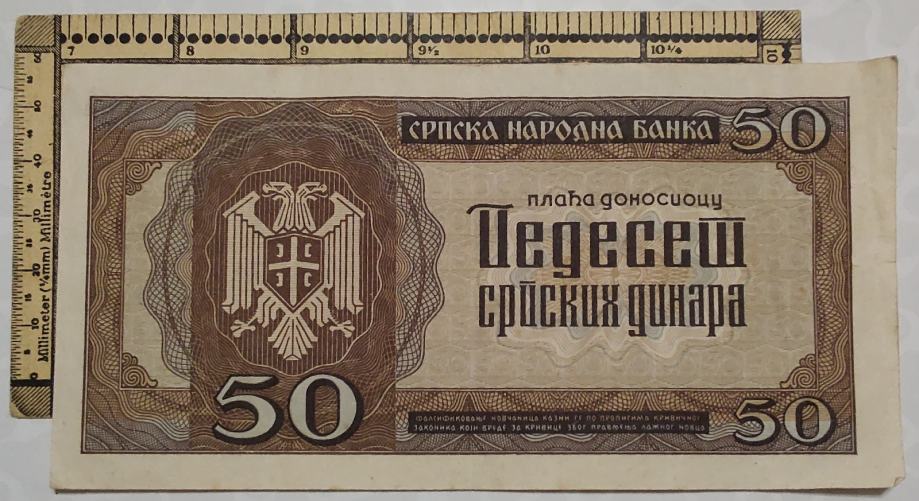 Bankovec za 50 Srpskih Dinara, 1942, Srpska Narodna Banka