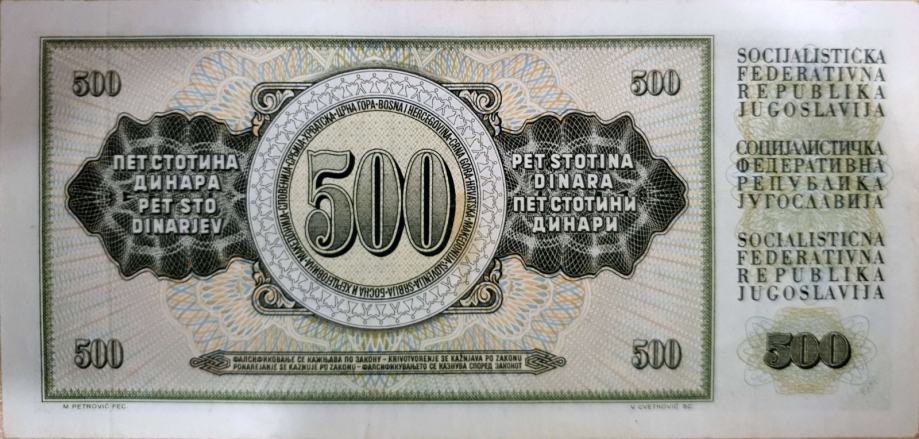 Prodam bankovec za 500 din letnik 1970 v dobri VF kvaliteti, Prevzem bankovca je možen v Mariboru, na stroške kupca pošljem tudi po pošti (tarifa Pošte Slovenije in pakiranje). Več info na mail, na sms ne odgovarjam.