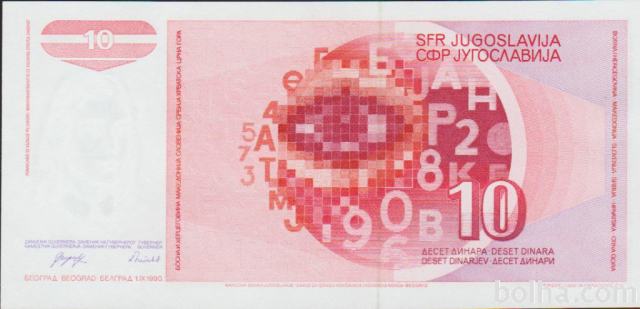 Prodam BANKOVEC 10 DINARJEV-P103a serija ŠE AA,AC,AD,AH CENA € 2,40,,50 DINARJEV-P104a serija "AL,AE CENA € 2,90 (JUGOSLAVIJA) 1990.UNC kvaliteta.