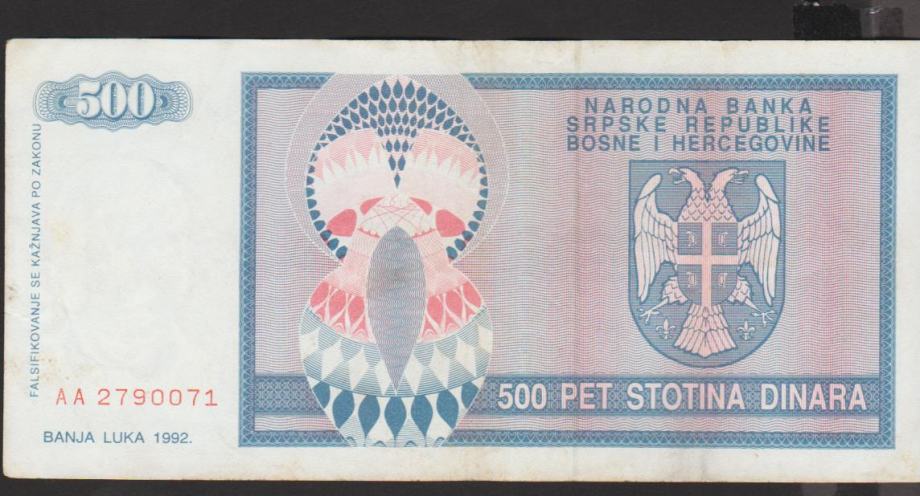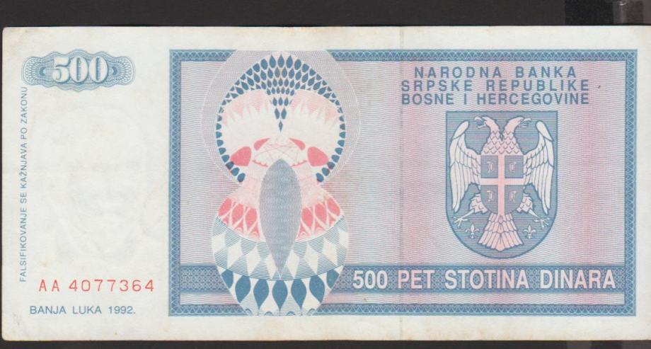 BANK. 500,1000,50000000 DIN 1.iz.BANJA LUKA SRBSKA REP(BOSNA)1992-1993