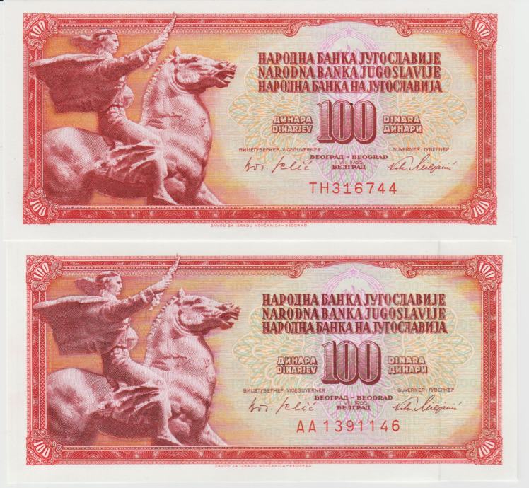 Prodam BANKOVEC 100 DINARA-RS,TH P80b-6 ŠTEVILK CENA €3,00 IN 100 DINARA-AA P80c-7 ŠTEVILK CENA €3,50 (JUGOSLAVIJA) 1965.UNC kvaliteta.