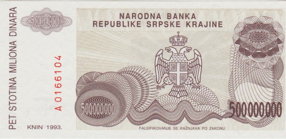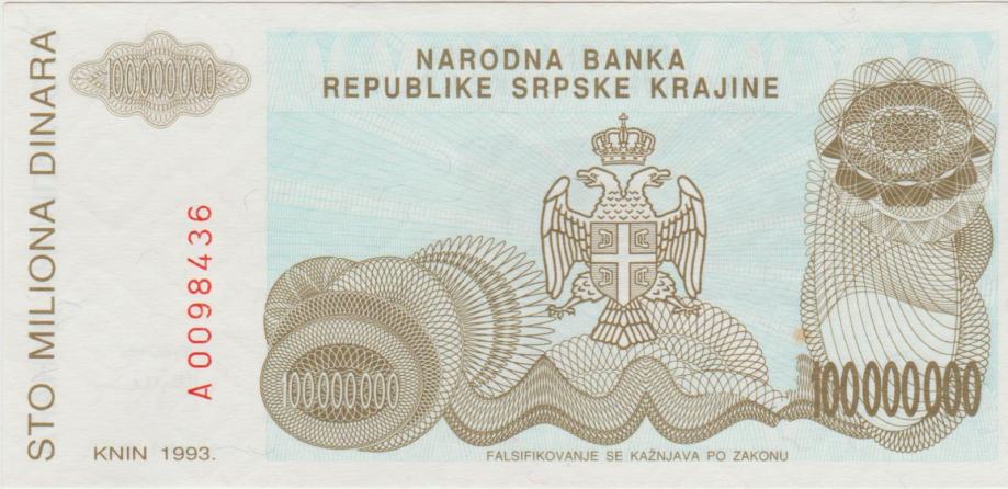BANK. 5000000,100000000,500000000 DINARA (KNIN SRB.KR.HRVAŠKA)1993.UNC