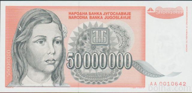 Prodam bankovec 50.000.000 P-123 DINARA (JUGOSLAVIJA) 1993, UNC kvaliteta .