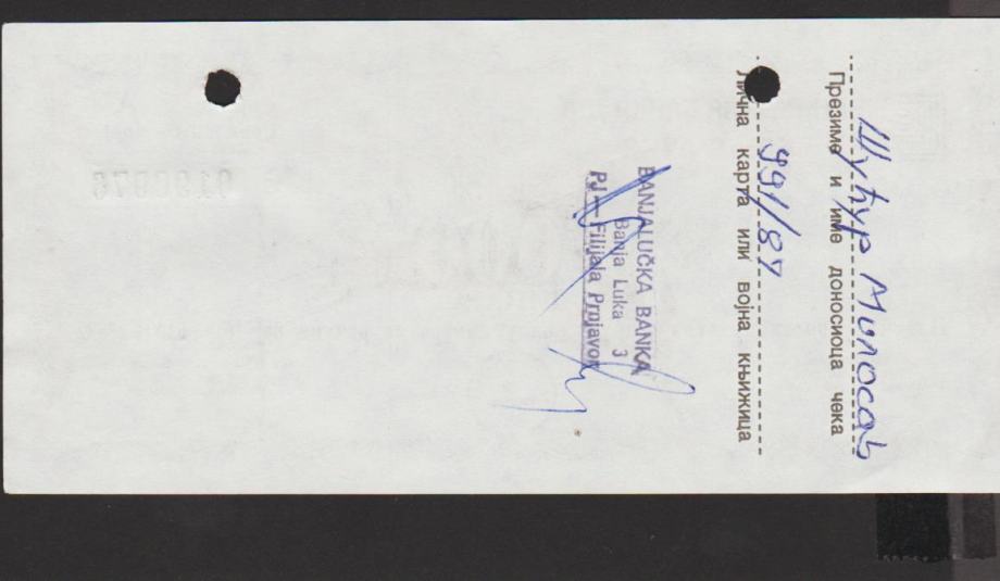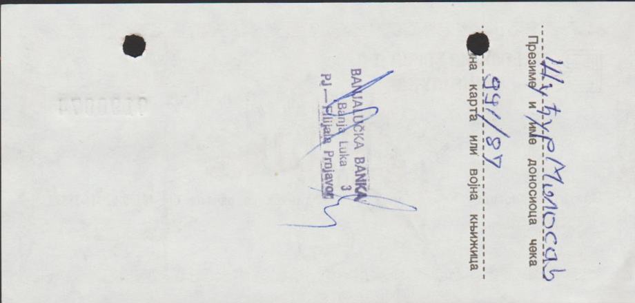 Prodam REDEK "NOVČANI ČEK" 1.000 DINARA 1992"Z ŽIGOM "BANJA LUKA filijala PRNJAVOR" (BOSNA BIH SRBSKA REPUBLIKA )aUNCkvalitete.CENA JE ZA 1 BANKOVEC.