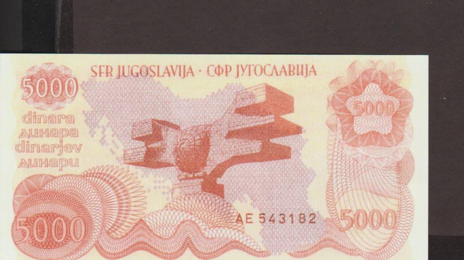Prodam BANKOVCI TITO spomeniki 5000 DINARA P102C...-privatna izdaja REPLIKA ( JUGOSLAVIJA) 1990.UNC kvaliteta.