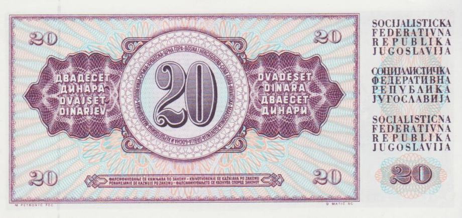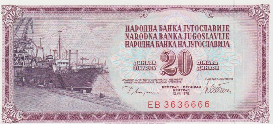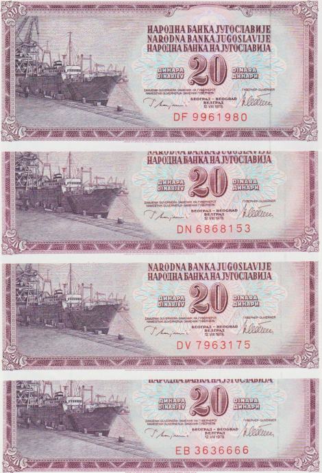 Prodam BANKOVCE 20 DINARA "DN,DO,DV,DM,DT" P88a (JUGOSLAVIJA) 1978.UNC kvaliteta.CENA JE ZA 1 BANKOVEC.