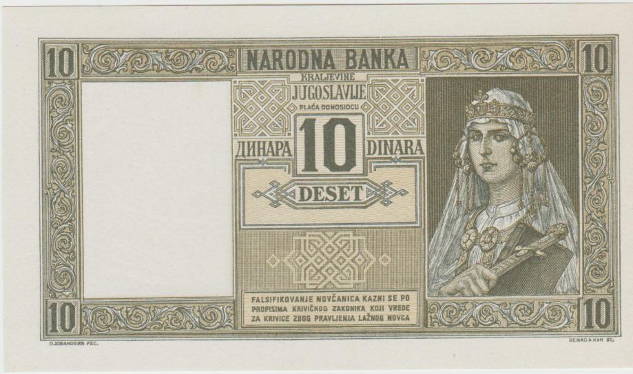 BANKOVEC 10 DINARA P35a -MARIJA &PETAR II.(KRALJ.JUGOSLAVIJA)1939.UNC