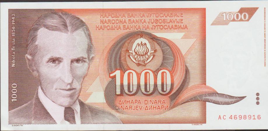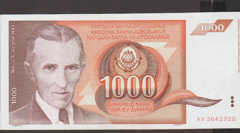 Prodam BANKOVEC 1000 DINARA "AC,AD,AH" P109a (JUGOSLAVIJA) 1990.xf++/aUNC kvaliteta.CENA JE ZA 1 BANKOVEC.