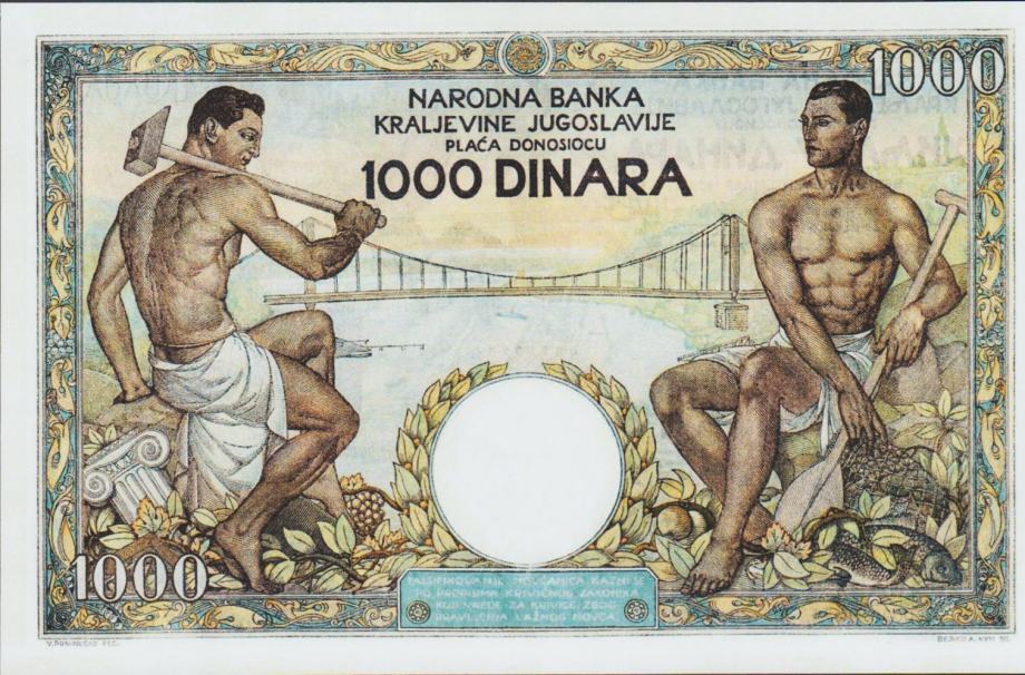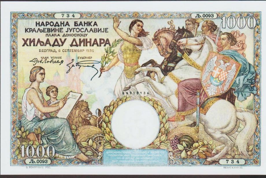 Prodam REPRODUKCIJA BANKOVCA 1000 DINARJEV 1935 P33- velik bankovec 183 x 113 mm (neizdan.) (KRALJEVINA JUGOSLAVIJA) 1935, UNC kvaliteta.