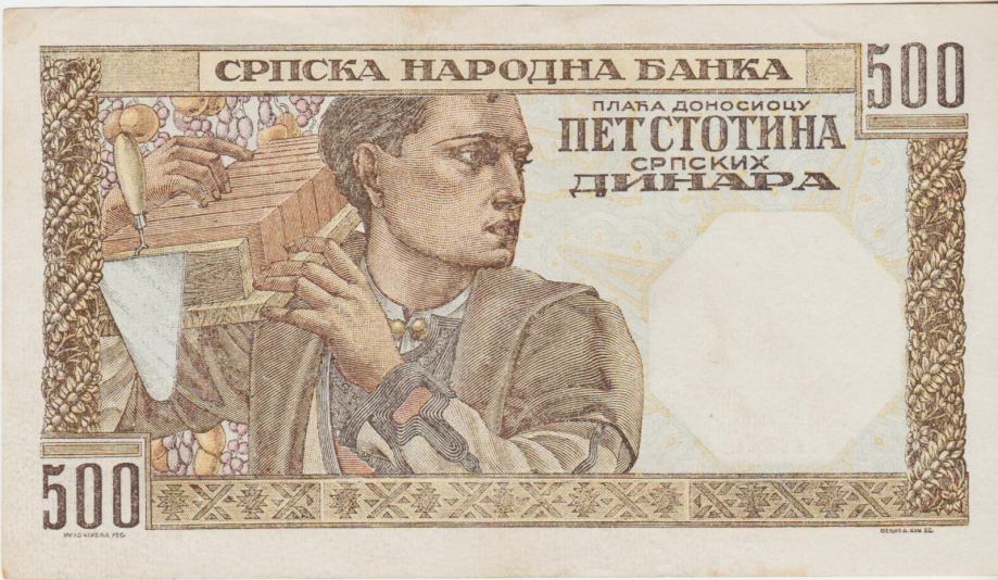 BANKOVEC 500 DINARA P27a,P27b vod.žig razl.(SRBIJA JUGOSLAVIJA)1941.XF
