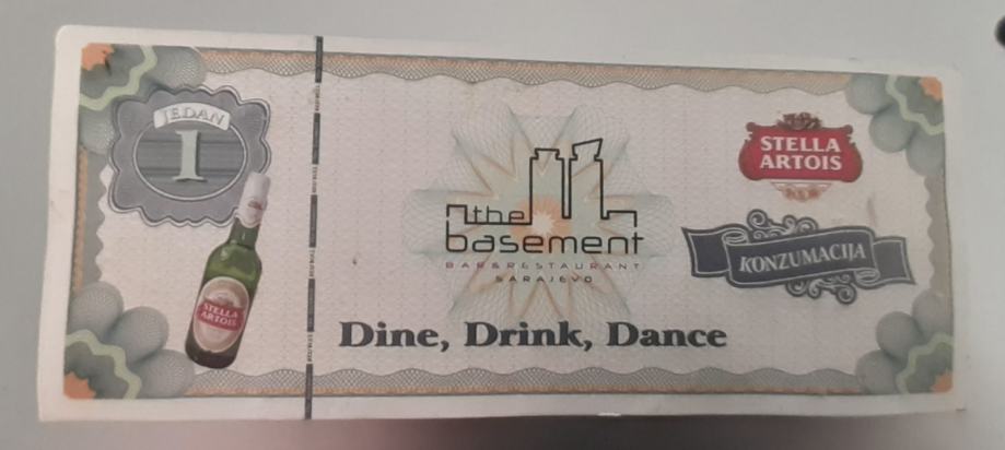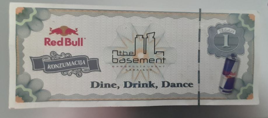 Bosna BON za konzumacijo 1 pivo 1 red bull Bar The Basement Sarajevo