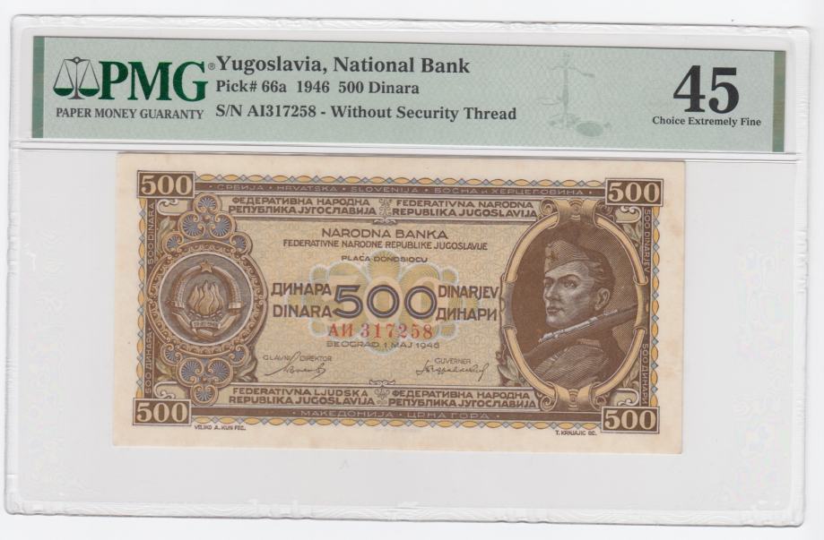 FLR Jugoslavija 500 DIN 1946 XF brez varnostne nitke gradiran