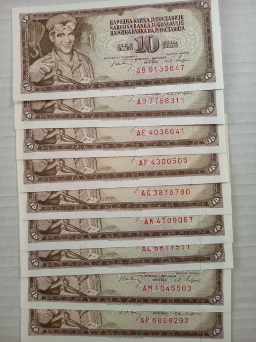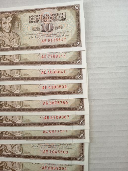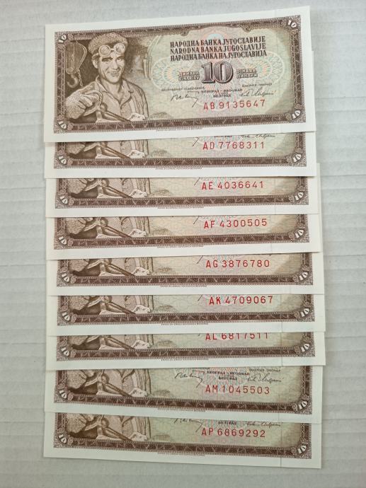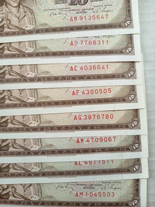 Jugoslavija 1968 10 din UNC serije AB, AD, AE, AF, AG, AK, AL, AM, AP