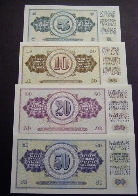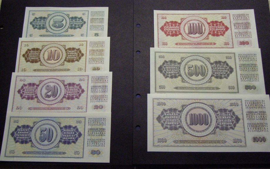 Prodam set bankovcev za 5, 10, 20, 50, 100, 500 in 1000 Dinarjev (YUD) iz Jugoslavija, kot jih lahko vidite na fotografijah in so povsem novi - UNC kvalitete.