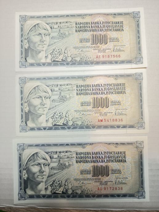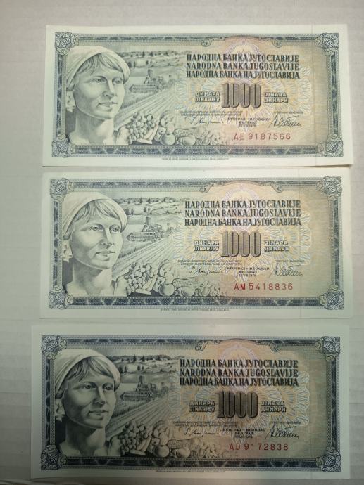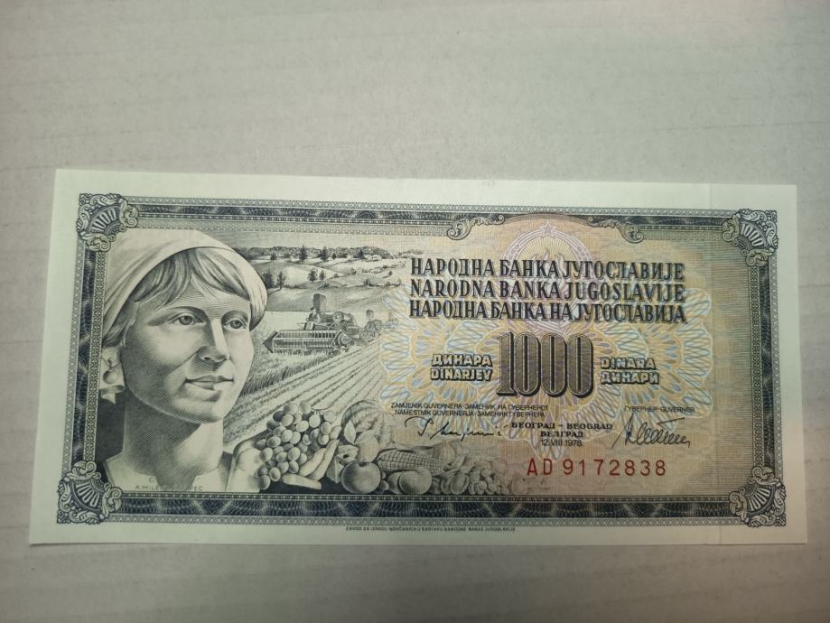 Prodam bankovec Jugoslavija 1978 1000 dinarjev XF+/aUNC serija AD, AE, AM.