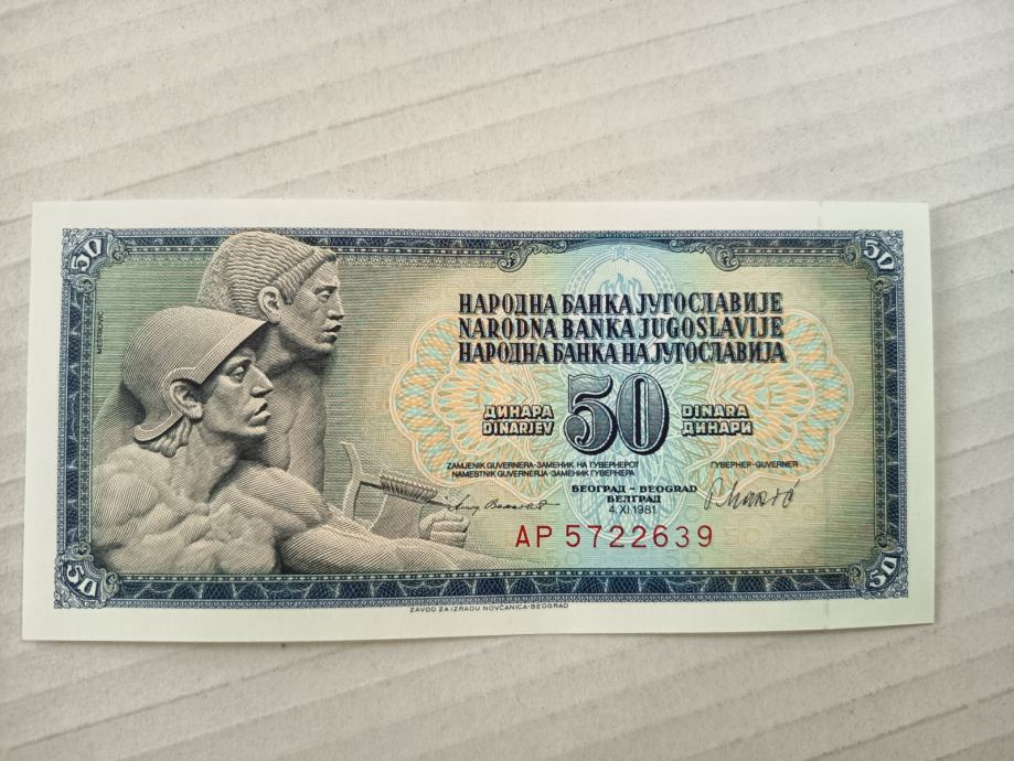 Prodam bankovec Jugoslavija 1981 50 dinarjev UNC serija AT, AP, AV..