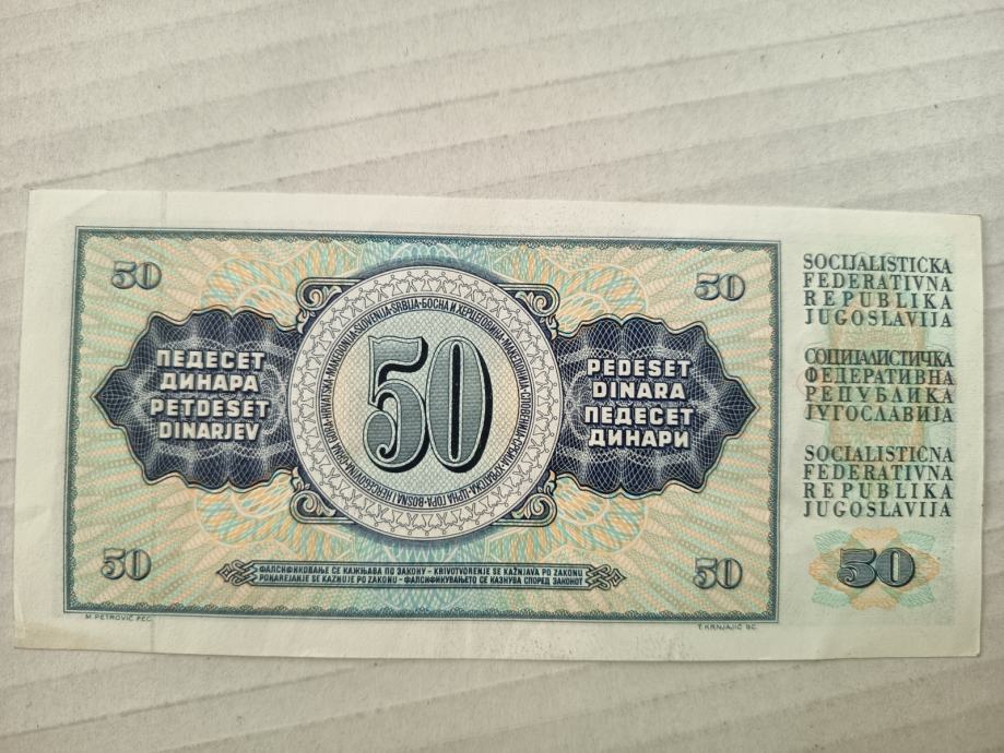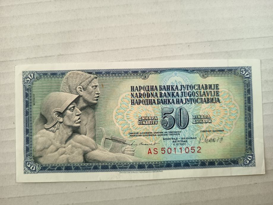 Prodam bankovec Jugoslavija 1981 50 dinarjev XF+/-UNC serija AS, AP, AR in AO.