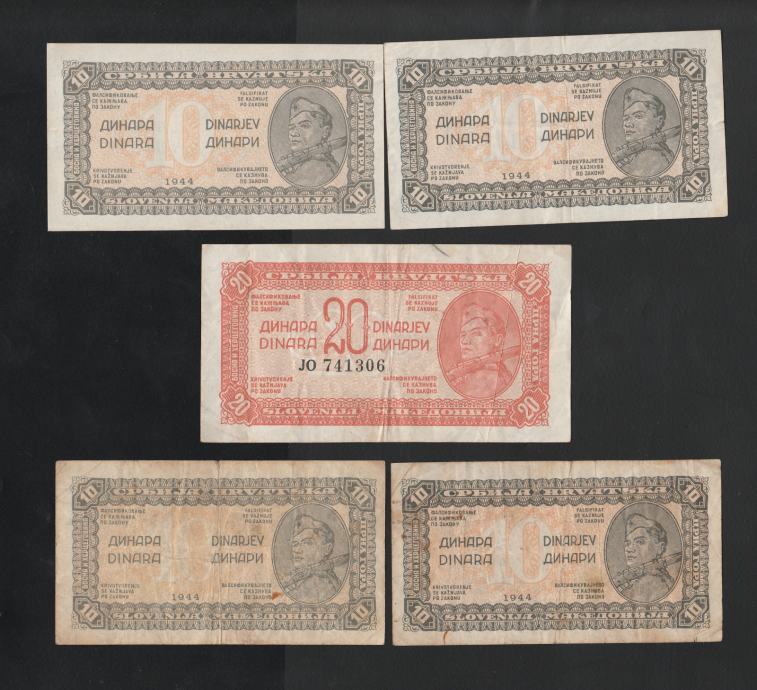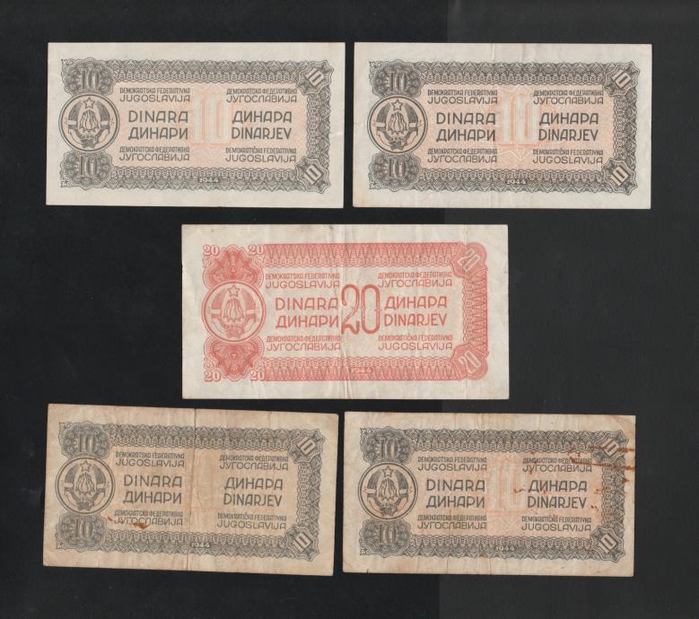 PRODAM SET BANKOVCEV JUGOSLAVIJE IZ LETA 1944, KATERI JE VIDEN NA PRILOŽENIH SLIKAH. CENA JE ZA CEL SET SKUPAJ.