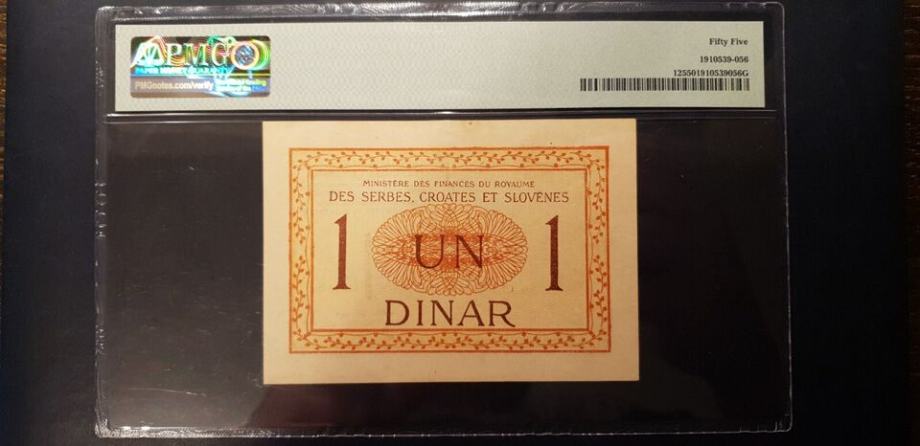 Kraljevina SHS 1 DIN 1919 enomestna serijska številka aUNC gradiran
