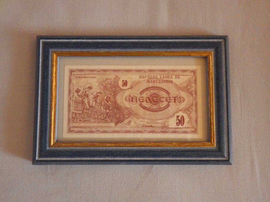 Makedonski bankovec v okvirju velikosti 20 x 13 cm.